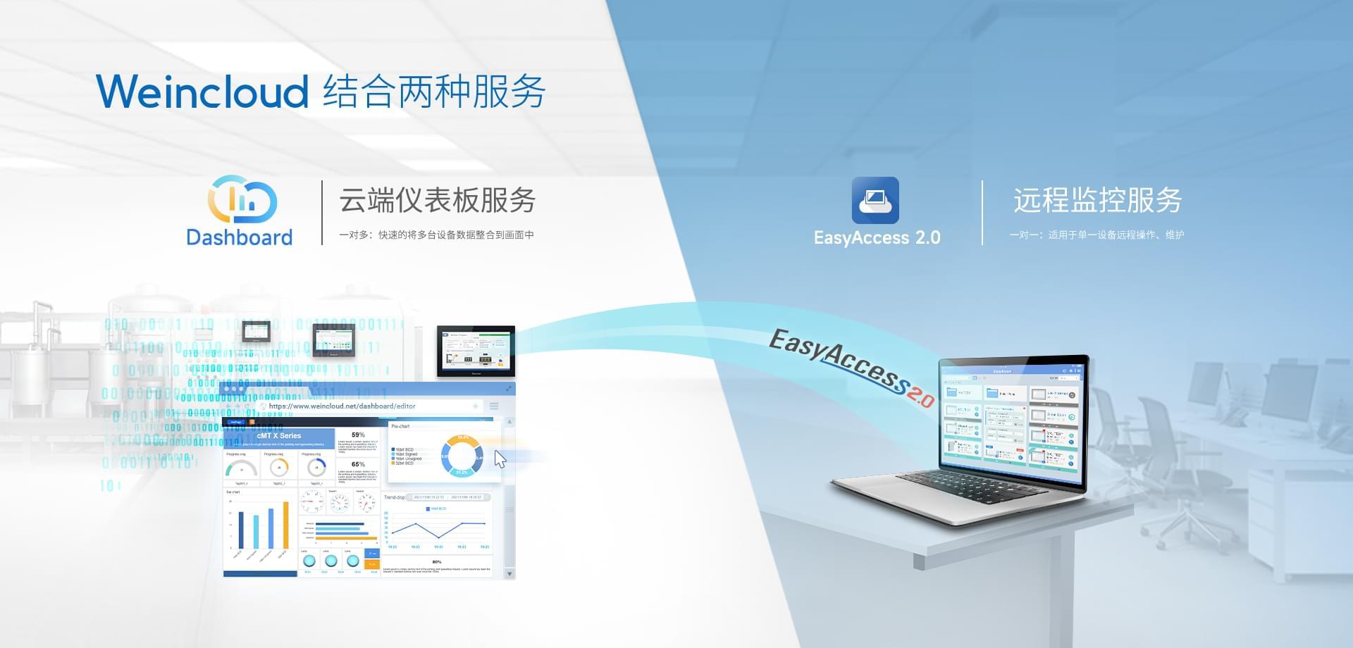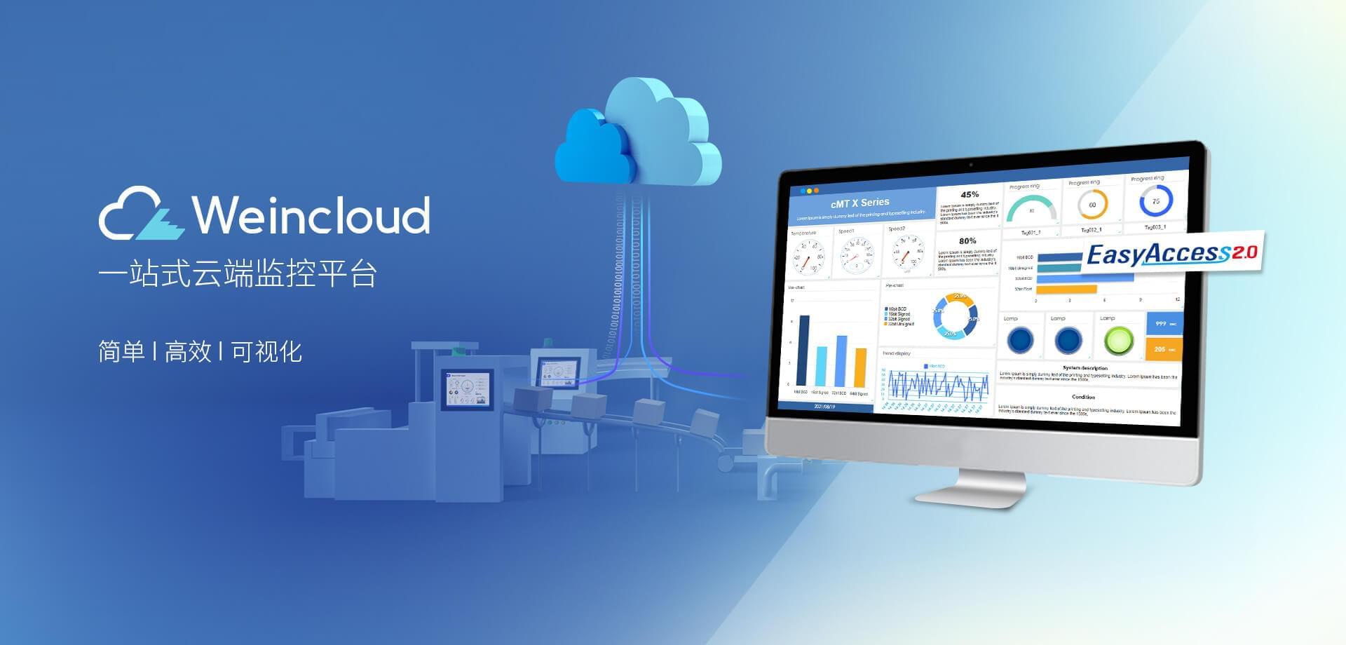 Weincloud 集結(jié)EasyAccess2.0遠程監(jiān)控服務(wù)及Dashboard云端儀表服務(wù),將設(shè)備資料數(shù)據(jù)上云并以視覺化呈現(xiàn),協(xié)助管理者實時掌控現(xiàn)場產(chǎn)線狀態(tài)。